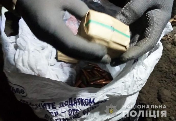 Спеціалісти та кінолог вибухотехнічного відділу поліції області належним чином оглянули місце схованки та доставили вилучені боєприпаси на відповідальне зберігання.