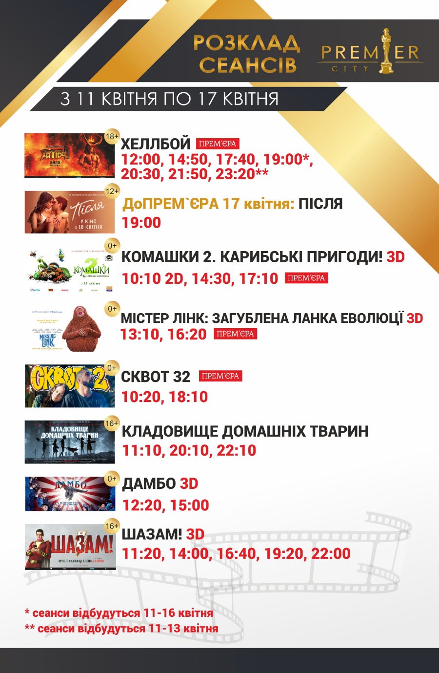 У кінотеатрі "PremierCity" відбудуться прем’єрні кінострічки.