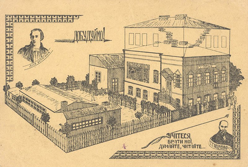Українська гімназія імені Лесі Українки. Листівка-цегелка, дохід від продажу якої йшов на розбудову гімназії. 1930-ті рр.