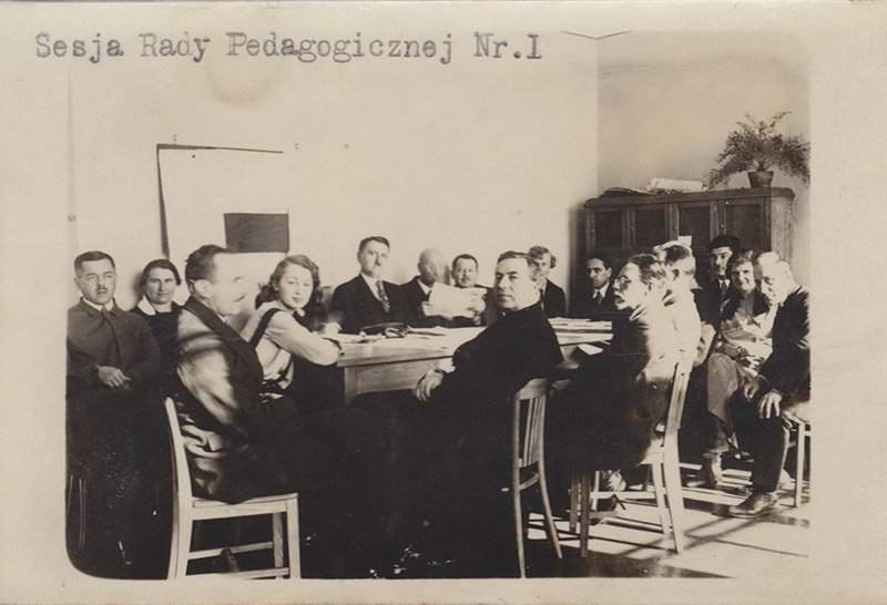 Сесія педагогічної ради Державної гімназії імені Тадеуша Костюшка. Знімок фотографічного кола гімназії, 1930-і рр.