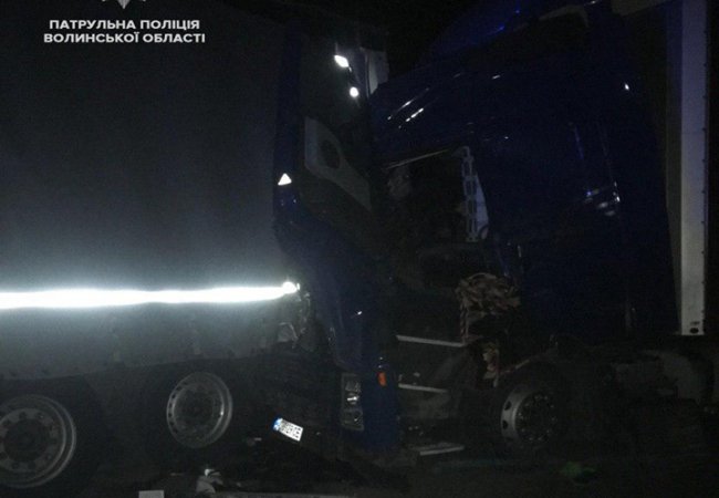 На Волині п'яний водій на Volvo розтрощив припарковану вантажівку