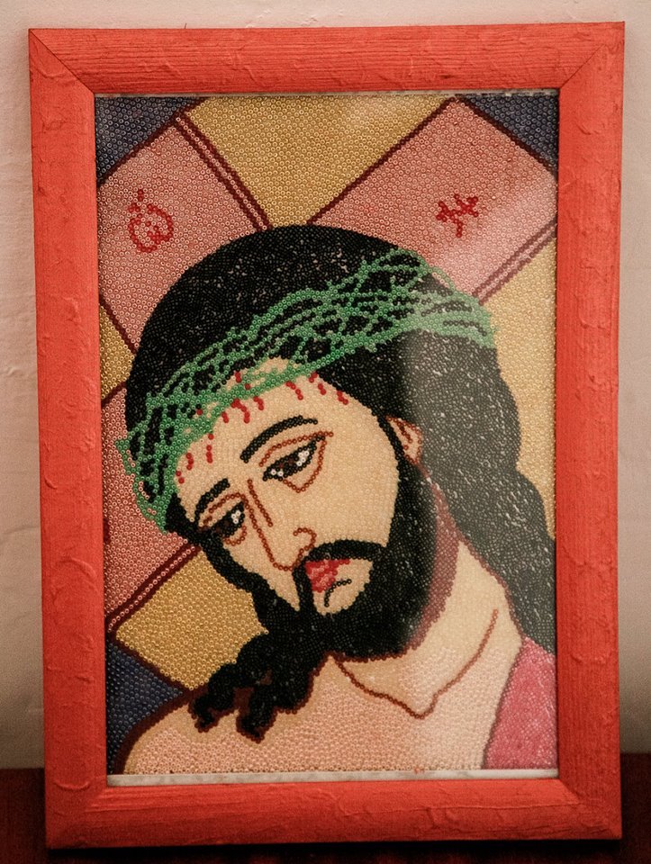 Волинський айдарівець Руслан Кашаюк продає власноруч зроблену з бісеру ікону, аби допомогти дітям загиблої під час обстрілу в зоні ООС волонтерки Яни Червоної.
