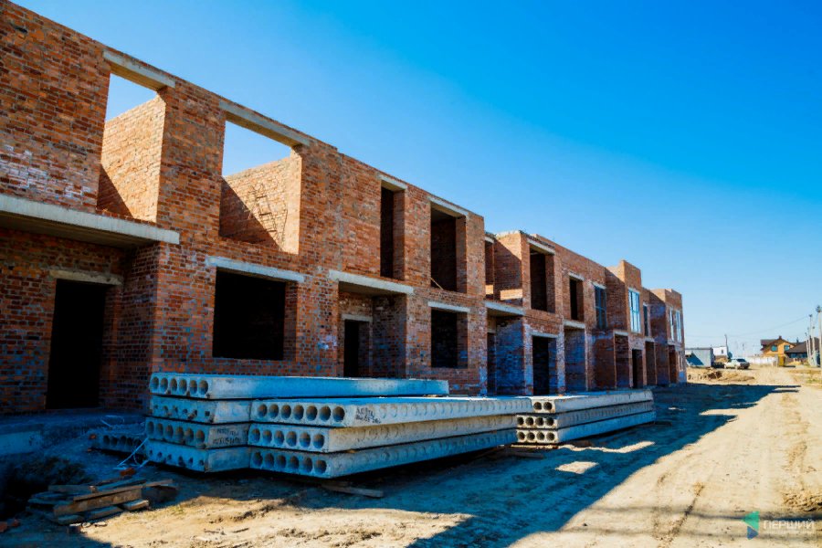 Наразі добудовують 1-шу секцію таунхаусів. У кількох таунхаусах вже встановили вікна.