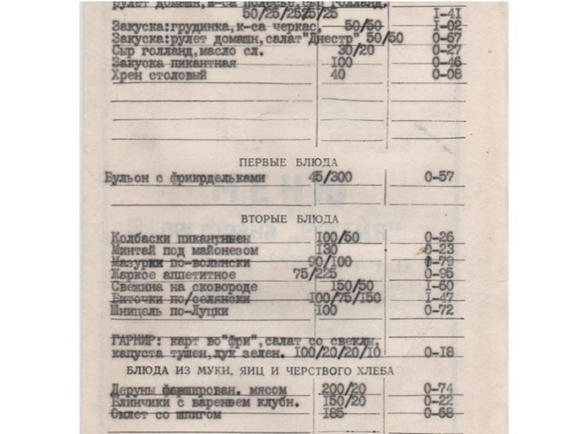 Скільки коштували фірмові страви у ресторані готелю «Лучеськ» майже 40 років тому. ФОТО