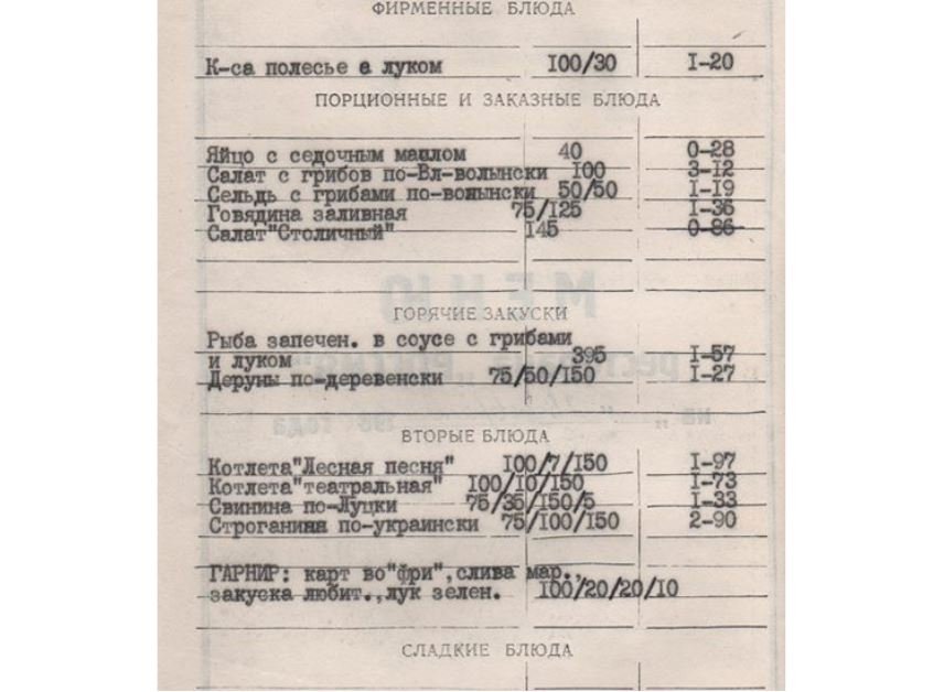 Якщо ви там бували і їли весь цей місцевий колорит, діліться враженнями! А, от, молодшому поколінню, схоже, оселедець по-волинськи уже не світить. Його можна знайти тільки в архівному меню ресторану 1980 року.