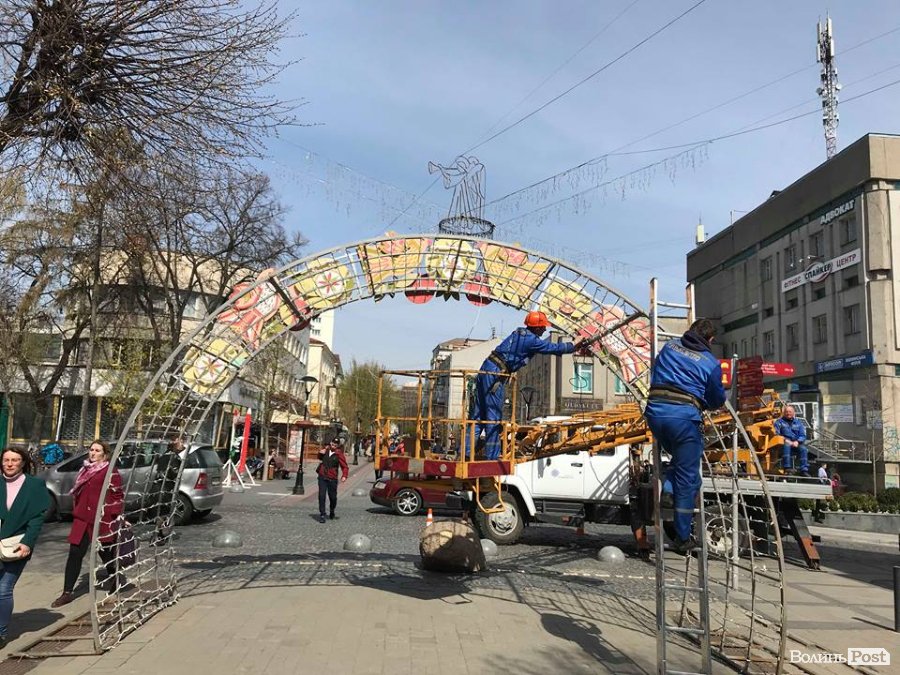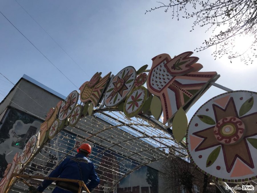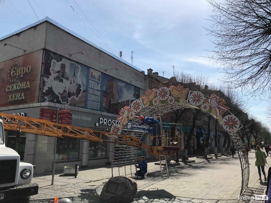 Головну пішохідну вулицю Луцька декорують великодніми арками. ФОТО