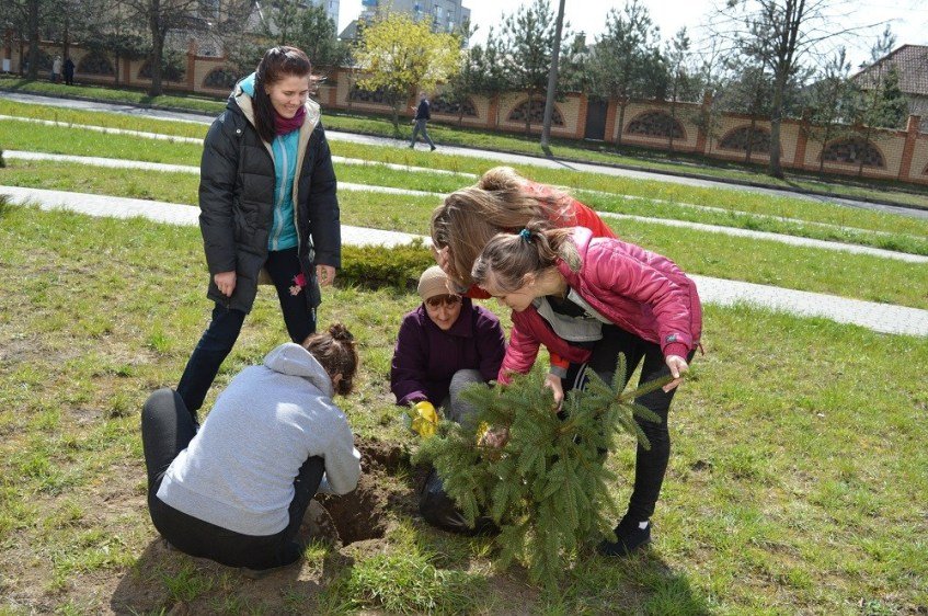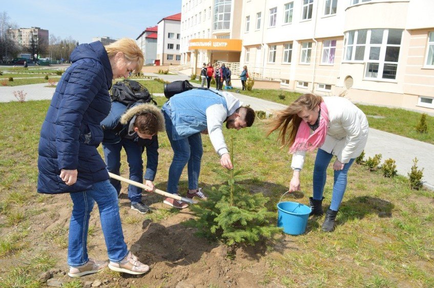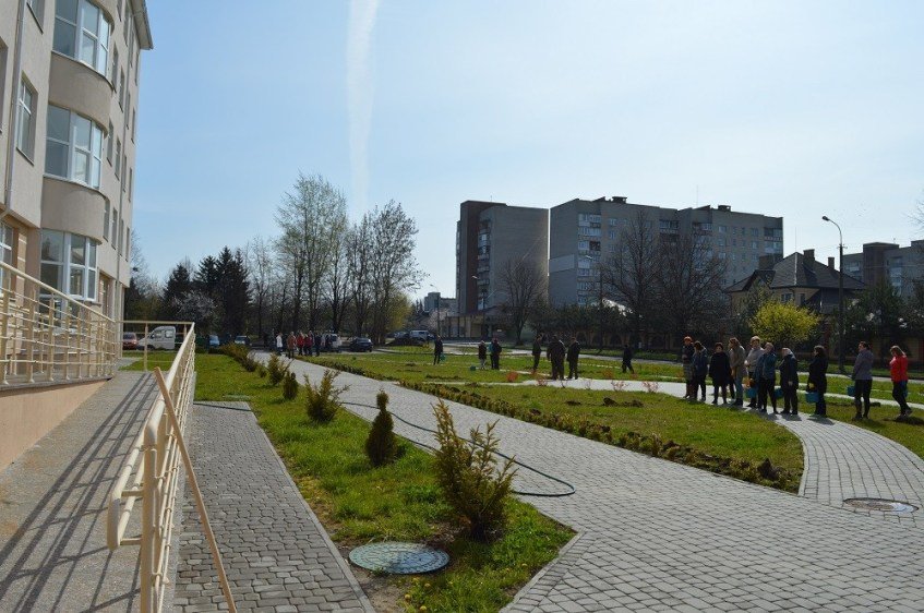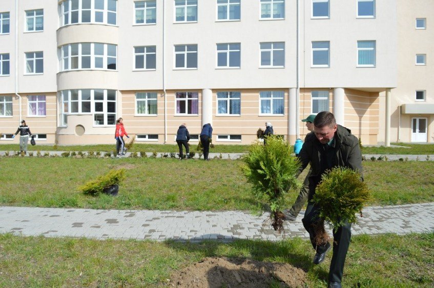 На подвір’ї – усі працівники центру: хто розносить деревця та кущі, хто копає лунки, інші носять воду для підливу, ще хтось підгрібає сміття. Працюють з настроєм та завзяттям. Серед них – заступник генерального директора Сергій Супрун, завідувачі відділень – неонатального, пологового, паталогічного, реанімаційного, сумісного перебування матері і дитини, екстрапатологічного, новонароджених, постнатального догляду – Микола Гнатів, Вікторія Костюк, Андрій Загребельний, Іван Вороблевський, Ганна Хоронжук, Лариса Лукасевич, Людмила Ліпич, Тетяна Кущій, завідувачі оргметодкабінетом Ніна Загребельна, жіночої консультації – Надія Щурук, відділу кадрів – Олександр Дуда, лікарський та сестринський персонал – Вікторія Піндюк, Ірина Хвалько, Лариса Василенко, Світлана Навроцька, Галина Окуневич, Тетяна Козак, Мар’яна Канюк, Тетяна Чередниченко, Володимир Володимиров, Вадим Кошкаров, Наталія Пукель, Галина Хамула, Оксана Цомпель, Світлана Миколюк, Тетяна Сасько, Ірина Грушко, Марина Трофимчук, Оксана Супрунець…