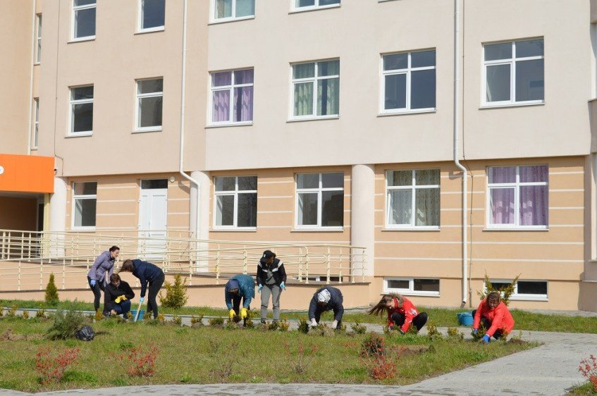 Побачили на подвір’ї перинатального центру і начальника відділу з питань управління об’єктами спільної власності територіальних громад сіл, селищ, міст області та землями комунальної власності обласної ради Мирославу Якимчук: вона із задоволенням долучилася до акції.
