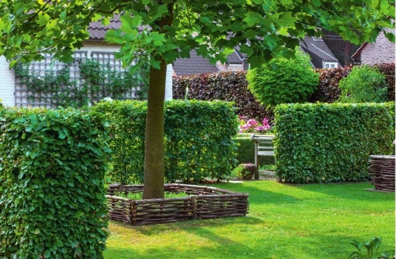 Живі огорожі можна робити з десятків видів кущів і дерев. Зокрема, вічнозелених туй – для високих парканів і самшиту – для низьких.
