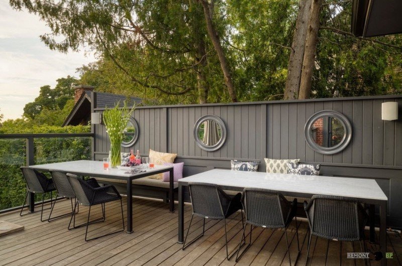 Тераса – фактично обов’язковий і головний елемент сучасних дворів. Це не просто підвищення для столу і крісел, а повноцінна зона відпочинку. Останнім часом стають популярними криті тераси. Пікнікам на таких не завадить ні палюче сонце, ні дощ.