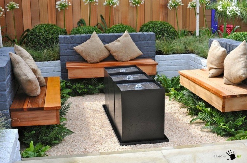 Тезу про те, що за водою можна спостерігати вічно, ще ніхто не спростував і, мабуть, не спростують ніколи. Зрозуміло, що на подвір’ї таунхаусу ставок чи басейн з 25-метровими доріжками не облаштуєш – забракне місця. Однак, невелика декоративна штучна водойма поміститься. Більш мінімалістичний варіант – фонтан. Достатньо буде одного чи кількох маленьких резервуарів зі струменем води. Головне, щоб все виглядало просто і стримано, а-ля антична ліпнина та мармурові фігурки давно не актуальні.