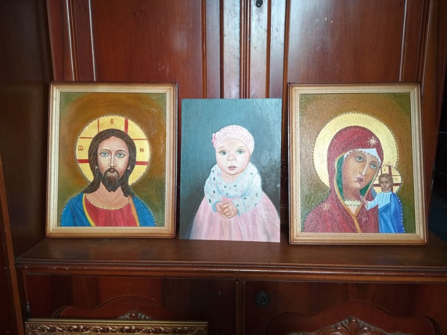 – Цей образ писала на замовлення для однієї заможної жінки, яка мала кілька магазинів із секонд-хендом. Ціну за роботу назвала мізерну, щоб лише матеріали окупилися. Проте їй і ця сума видалася завеликою. Довго крутила носом, та зрештою відмовилася купляти й кинула ікону на гору лахміття, ніби непотріб. У мене серце стиснулося, клубок підступив до горла, але змовчала, – пригадує Антоніна Шафранська. – Забрала образ додому і залишила на ніч у кімнаті. Коли зайшла туди зранку, мороз пішов по шкірі: Божа Матір та маленький Ісус плакали! Мабуть, ікона відчула недобру енергетику тієї жінки, і не хотіла йти з мого дому. Тоді пообіцяла, що як би скрутно не було, ніколи її не продам! Якщо придивитися, то сліди від сліз видно ще й досі.