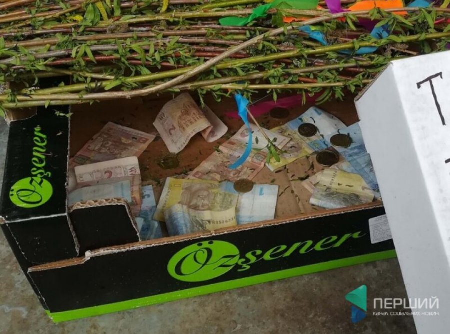 Табличка з написом «Треба? Бери. Можеш? Заплати». Поруч – гірка верби, яку таким чином продають-роздають у свято, пише Перший.