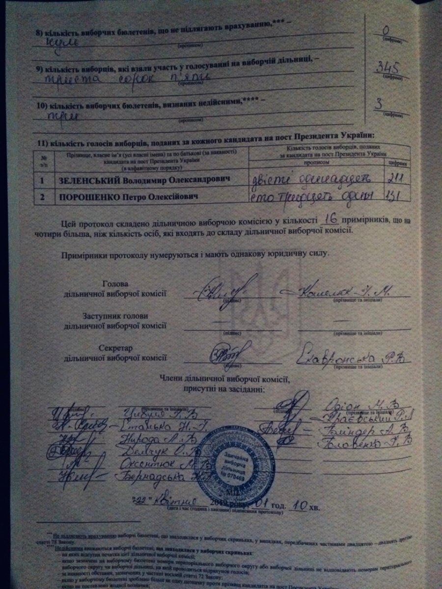 Крім того, дільнична виборча комісія №070114 (с. Михлин Горохівського р-ну) підписала протокол і, не поставивши дату, пропечатала його.