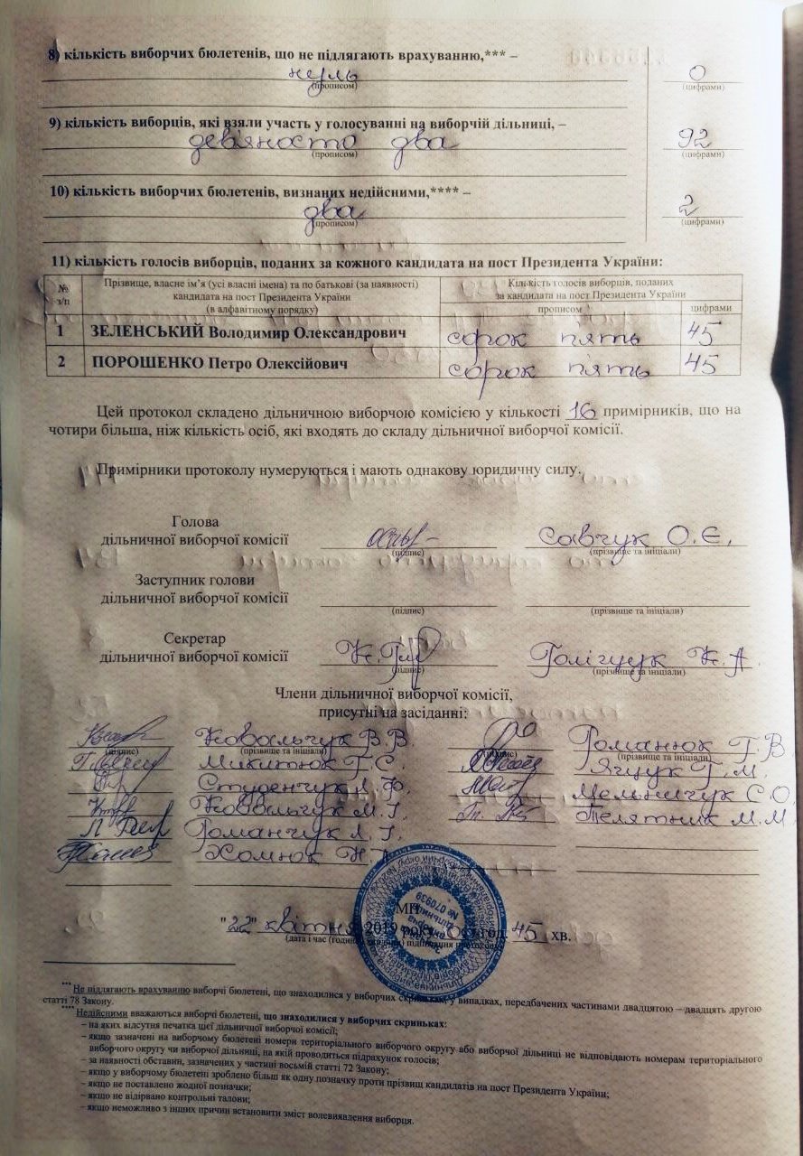 Зокрема, дільничні виборчі комісії №070939 (с. Вербичне Турійського р-ну), №070445 (с. Михайлівка Локачинського р-ну), №070469 (с. Крухиничі Локачинського району) та №070139 (с. Скригове Горохівського р-ну) склали протоколи про підрахунок голосів ще 21 квітня 2019 р., втім, датовані вони 22 квітня 2019 р.