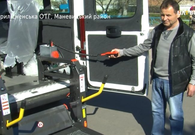 Скористатися послугами «соціального таксі» можуть люди з порушенням опорно-рухового апарату, таких в громаді 35, - каже Олексій Гнатюк. Водій «соціального таксі» Володимир Музичук показує, як працює обладнання для людей на «візках».