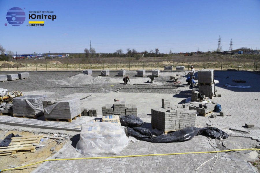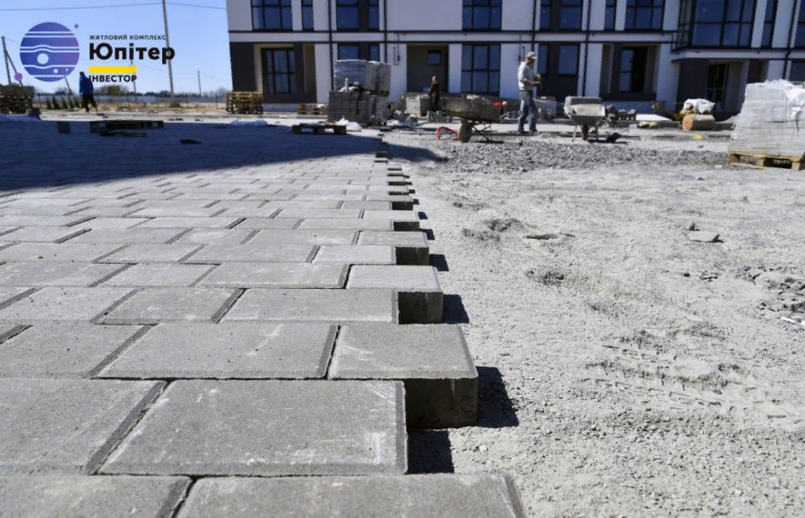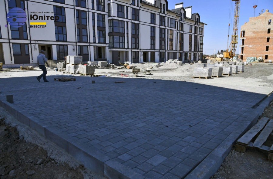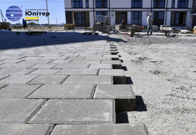 У житловому комплексі «Юпітер» розпочали класти бруківку біля другого будинку.