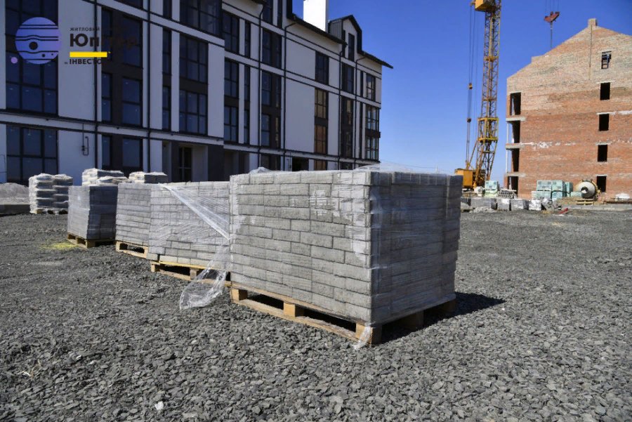 За словами виконроба будівництва Петра Шапошнікова, біля другого будинку триває облаштування території — спеціалісти компанії кладуть бруківку.