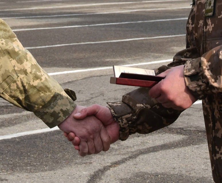 Високі нагороди Руслану Кьочарієву, Тарасу Сюмаку, Максиму Конотопському та Олександру Степаняну на плацу нашої військової частини урочисто вручив командир 14 окремої механізованої бригади полковник Сергій Войченко, подякувавши військовослужбовцям за виявлені під час виконання завдань за призначенням мужність та героїзм.