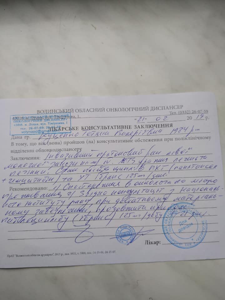 Онкохвора волинянка Тетяна Куценко розповіла про результати лікування.