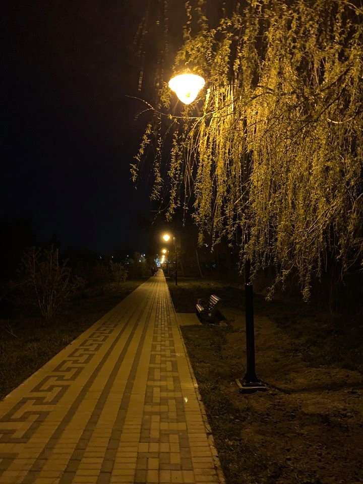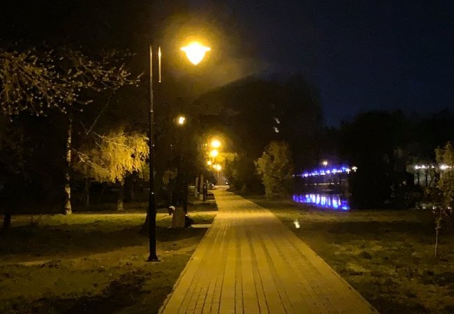 17 опор з сучасними енергозаощадливими натрієвими лампами створюють затишну атмосферу від зупинки «Старий ринок» до повороту на центральну алею.