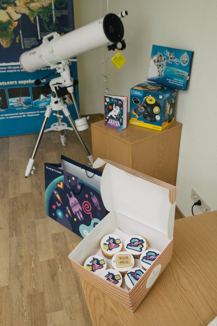 Дівчинка дізналась багато цікавого про дослідження космосу, українську космонавтику, дистанційне зондування Землі, перші телескопи. Цей день надовго запам'ятається Даринці, а на згадку про те, що мрії збуваються, в неї залишились подаруночки, які допоможуть їй досліджувати зірки та робити відкриття таємниць Всесвіту.