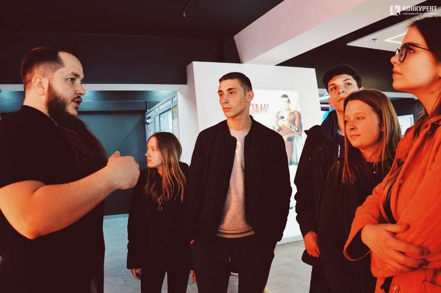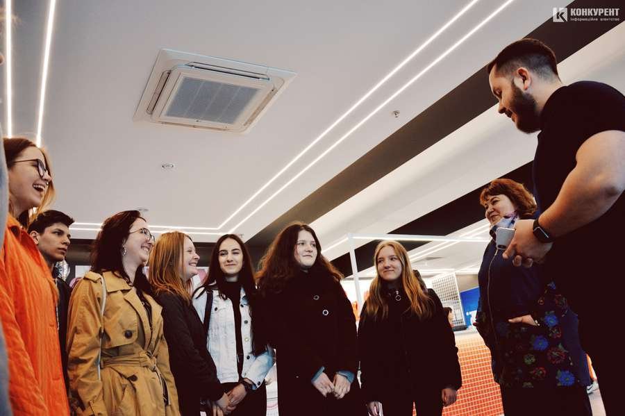 На першому поверсі РЦ старшокласників чекав директор комплексу Дмитро Грелюк. Спочатку він розповів історію розважального центру, а далі зосередився на тому, як нині функціонує заклад. Директор розповів про 5 нових кінозалів, магазин «Сільпо», який є другим в Україні супермаркетом, виконаним у новій концепції цієї торгової мережі.
