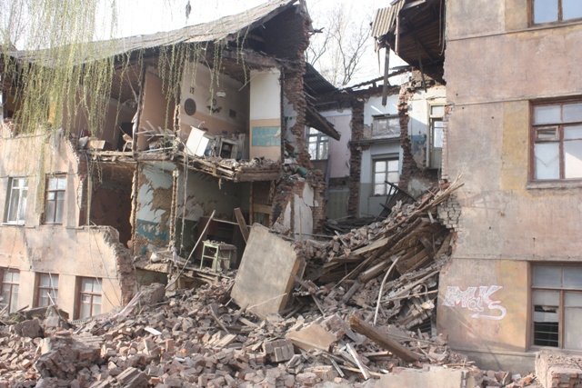 На території Донецької області зараз біля ста аварійних будинків, в яких і далі живуть люди, щодня ризикуючи опинитися під руїнами. Раніше повідомлялося, що у Сумах на території місцевого ринку впав споруджуваний двоповерховий торговий центр.