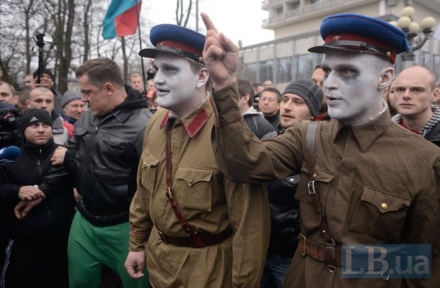 Двоє чоловіків, які одягнулися у форму НКВД та загримувалися під мерців, відвідали виставку «пам'яті жертв УПА».
