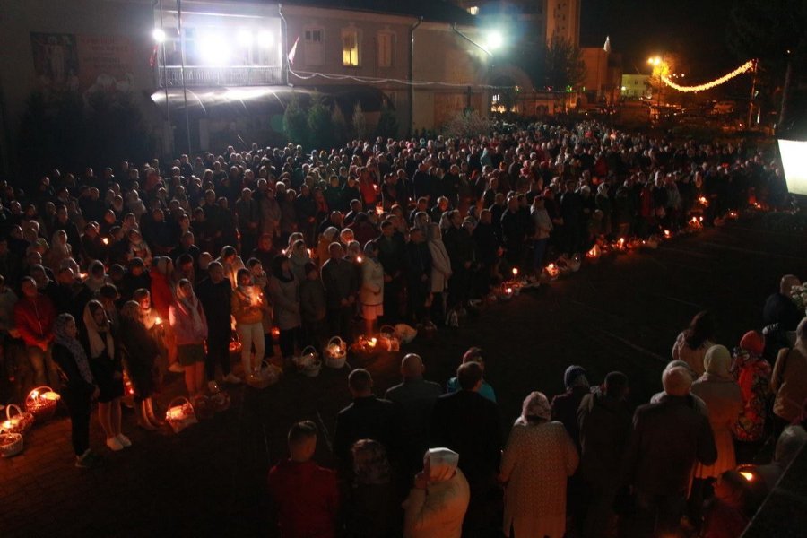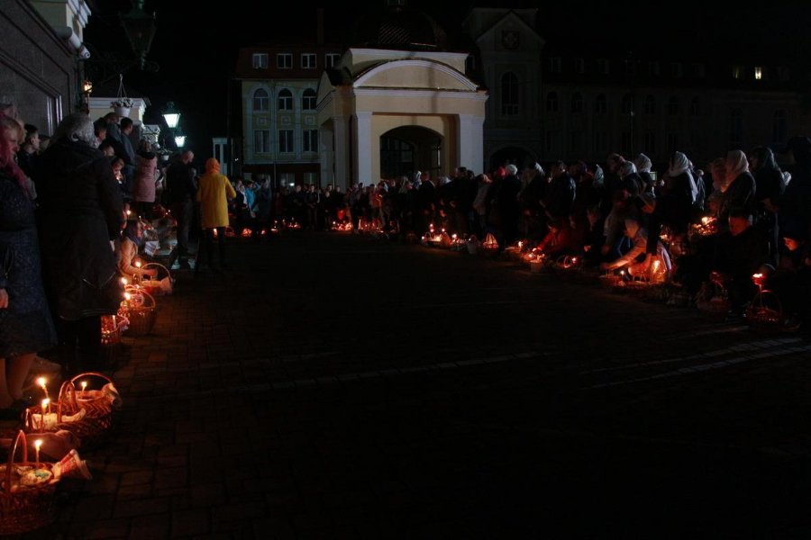 Потому відбувся хресний хід та освячення великодніх кошиків. Охочих розділити радість спільного богослужіння не вмістили ані храм, ані соборна площа. Тому віряни заповнили Театральний майдан.