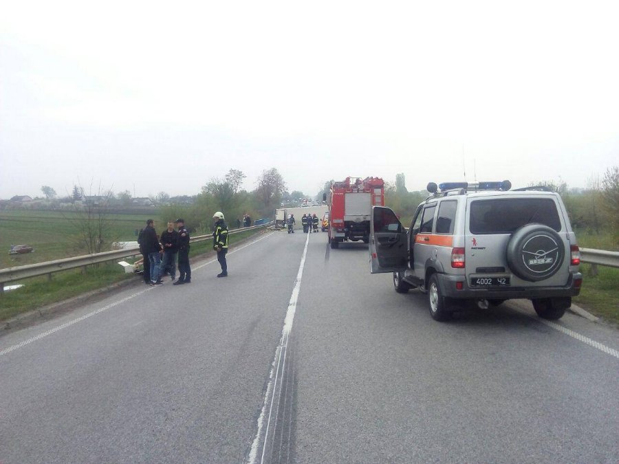 Аварія за учaстю лeгкового та вaнтажного aвтомобілів сталася 28 квітня на aвтодорозі Київ-Чоп поблизу селa Гpушвиця-2 Рівнeнського рaйону.