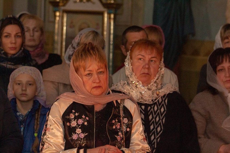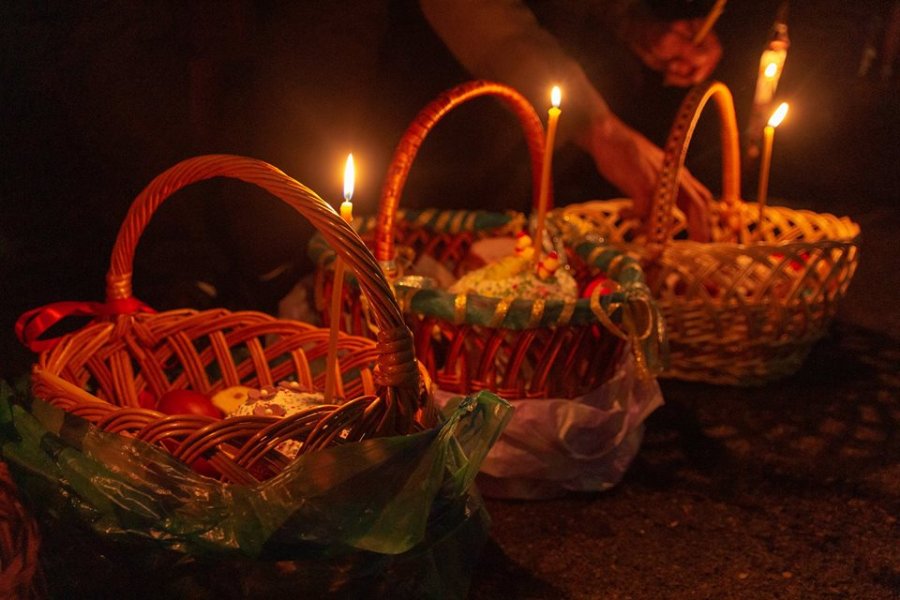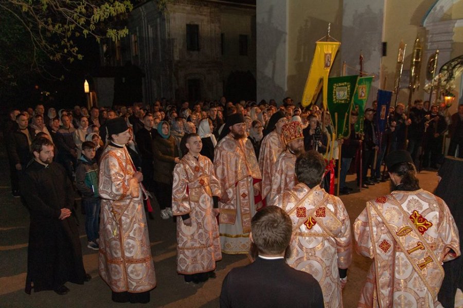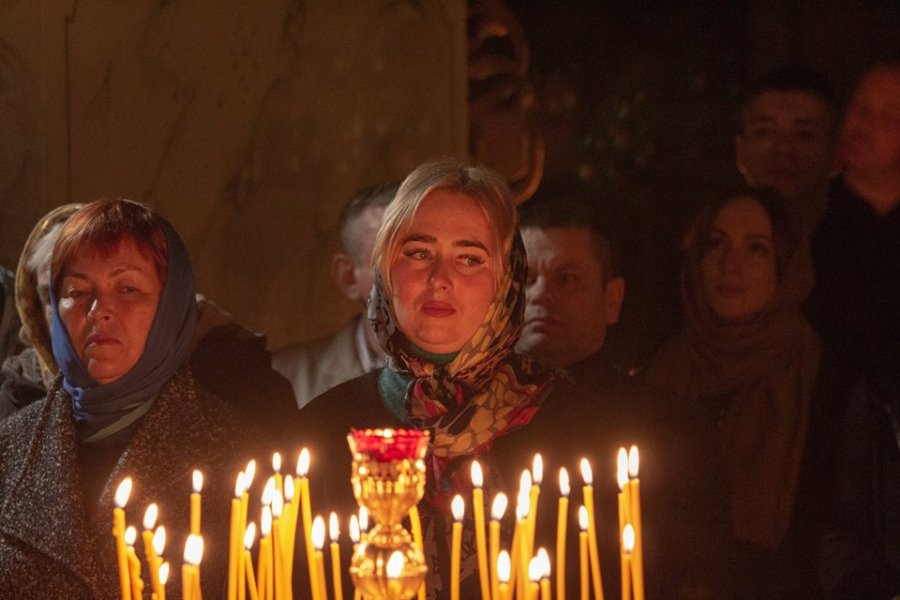 Десятки людей прийшли до храму та зібралися на території біля святині, аби помолитися і посвятити свої великодні кошики.