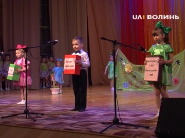 На сцені Палацу учнівської молоді – вихованці екологічного гурту «Джерельце» луцького дошкільного навчального закладу №8. Вони розповіли про правила сортування сміття і важливість бережливого ставлення до природи.