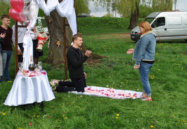 "Михайло розповів мені, що хоче зробити Ірі пропозицію й ми разом з ним та його мамою Наталією Анатоліївною почали думати, як це оригінально зробити. Хотіли, щоб Ірина запам’ятала цей день на все життя. Близько двох місяців все організовували. Було безліч ідей, варіантів, але зупинилися на цьому й навіть план дій записали на аркуші паперу. Та вийшло все ще більш круто та емоційно, ніж ми очікували", – розповідає подруга нареченої Анастасія Рижанова.