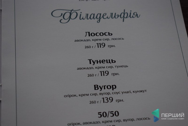 У закладі – нове меню, основа якого – страви європейської кухні (салат «Цезар», закуска «Тар-Тар», м’ясні страви тощо) та суші.