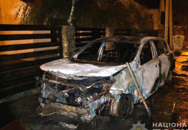 Рятувальники пожежу загасили, втім іномарку практично повністю знищено вогнем. З місця події криміналісти вилучили пожежне сміття та змиви паливно-мастильних матеріалів.
