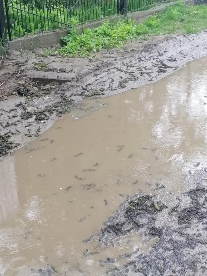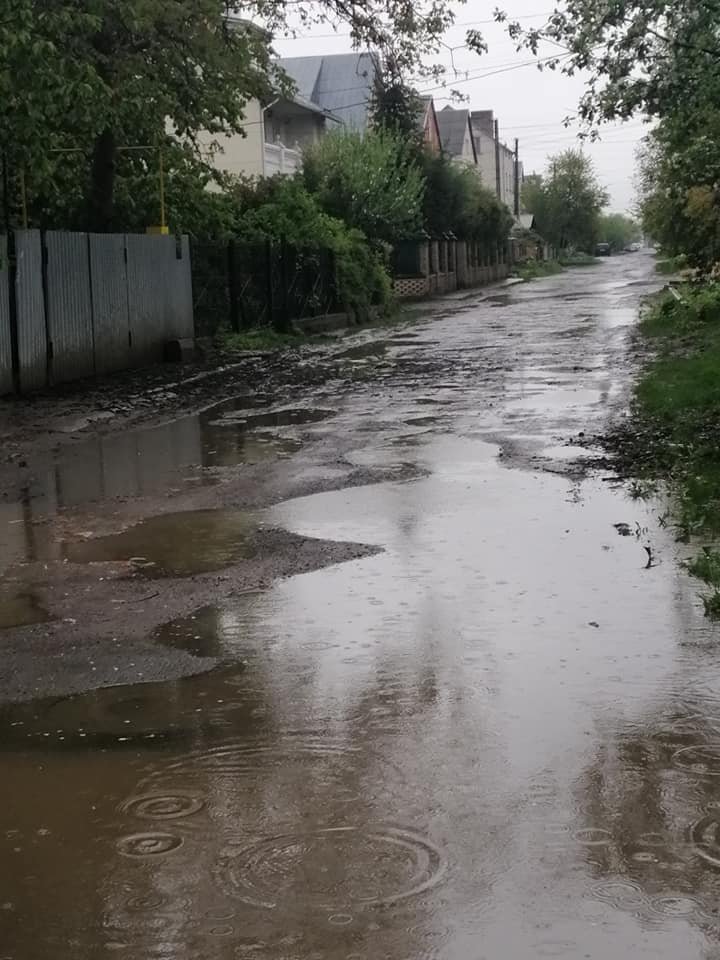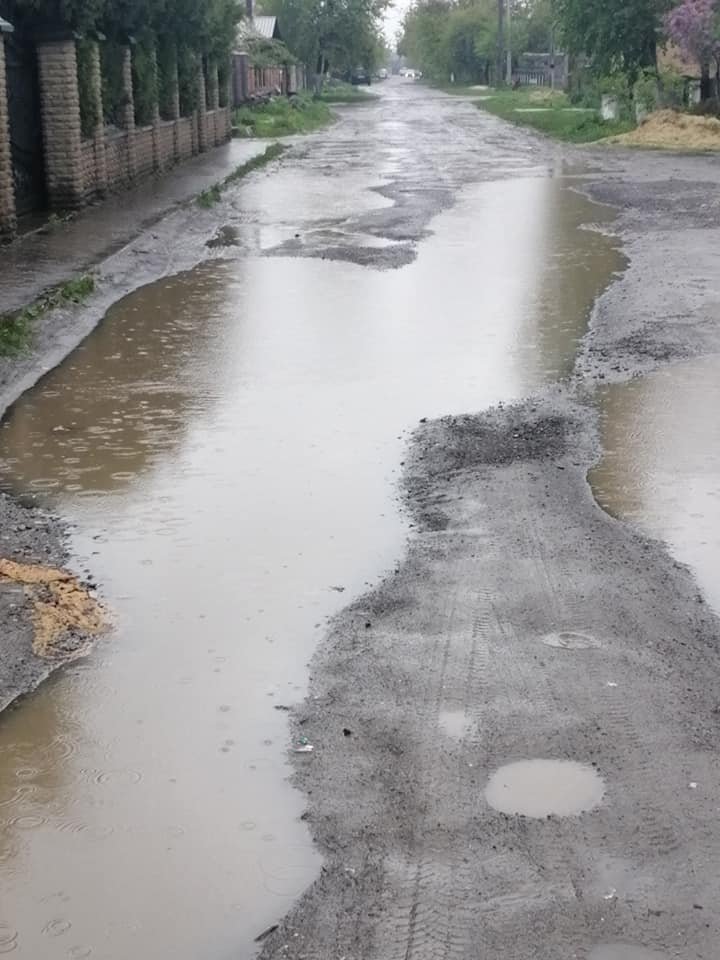 На знімках видно, що вулиця, через різного розміру ями, перетворилась на суцільну калюжу.