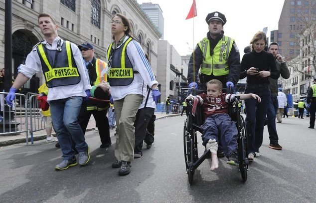 Хірург травматологічного відділення лікарні Massachusetts General Hospital Пітер Фагенхольц розповідає, що багато постраждалих надійшли з ураженнями нижніх кінцівок. Деякі травми настільки серйозні, що потрібна ампутація. Більшість поранень ‒ осколкові, однак Фагенхольц не підтвердив повідомлення про те, що бомби були начинені металевими кульками від підшипників. За його словами, лікарі витягли з ран безліч дрібних металевих осколків, але поки складно сказати, чи дійсно це вражаючі елементи вибухового пристрою.