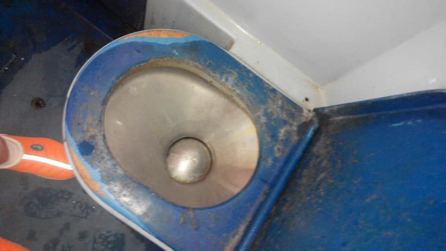 "Єдиний поїзд, що ходить із Волині до Одеси. На ньому возять дітей у табори і санаторії. Багато дітей, сотні. І ось в якому він стані. Ці фотографії робила моя мама позавчора. Каже, минулого разу (місяць тому) брала купе (цього разу не встигла) - воно точно таке ж, тільки туалет трохи кращий", – написала вона в коментарі.
