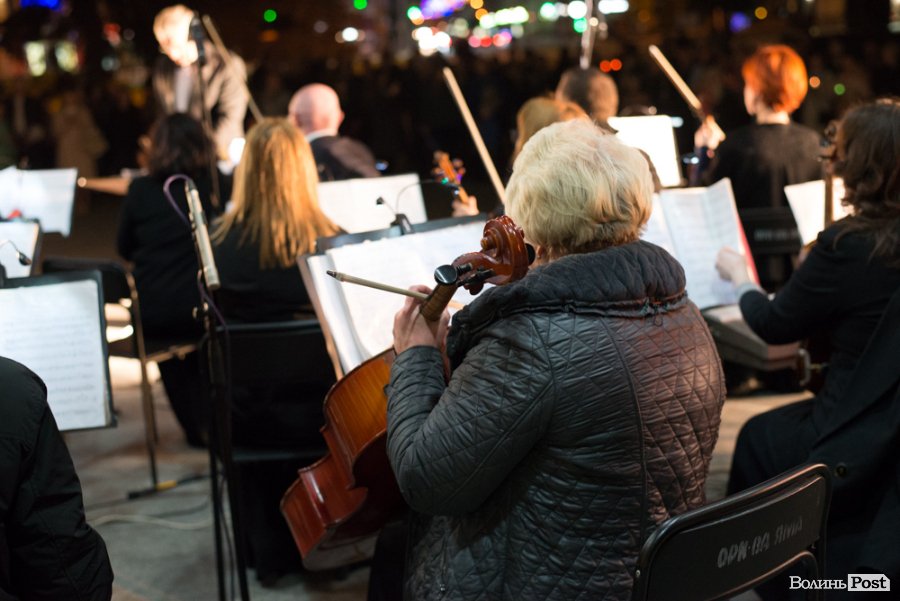 У виконанні оркестру лунали класичні твори, а також пісні українських композиторів: «Мить» (гурту «Океан Ельзи»), «Баладу про мальви» (Володимира Івасюка), «Солдатику мій» (відома у виконанні Лесі Горової), «Біла голубка» (Олега Винника), «Біля тополі» (гурту «Еней»).