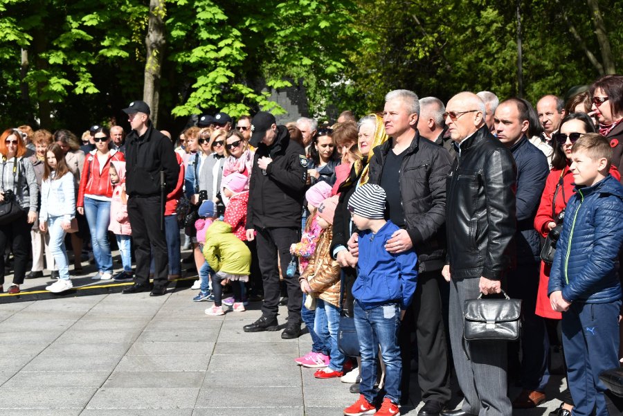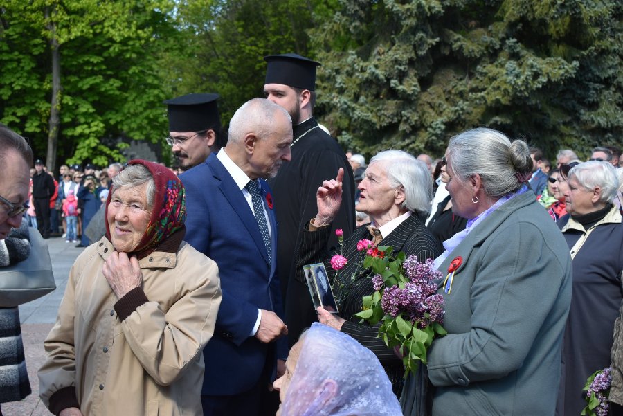 "Народ України один із тих, хто втратив неймовірно велику кількість своїх синів і доньок в цій трагедії світового масштабу. Не шкодуючи ані душі, ані тіла народ України героїчно та мужньо виборював для світу свободу від нацистських загарбників. Друга Світова війна і виборена в ній Перемога, віддаляючись від нас у часі, не відходять у забуття. Священна пам’ять завжди залишається у наших серцях. Ми сильні тоді, коли пам’ятаємо. Ми пам’ятаємо – значить перемагаємо!" - промовила ведуча дійства та запросила присутніх вшанувати загиблих покладанням квітів до монументу.