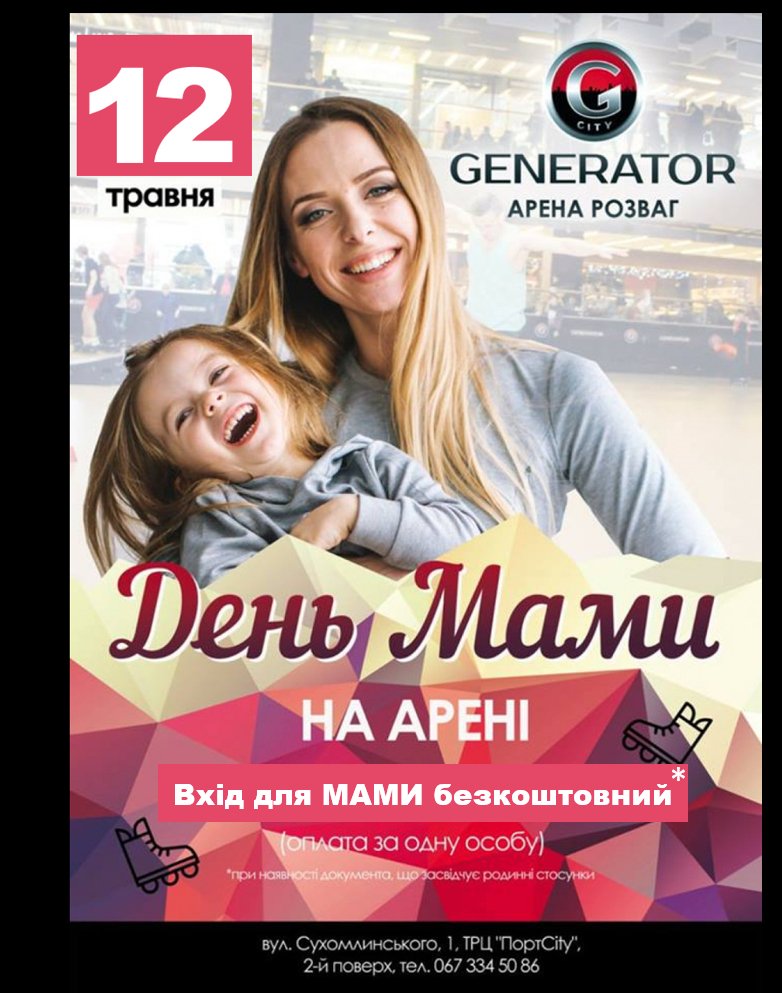 Окрім того, спеціально до Дня Мами на арені розваг GeneratorCity вхід з мамою – безкоштовний (оплачується лише квиток на одну особу).