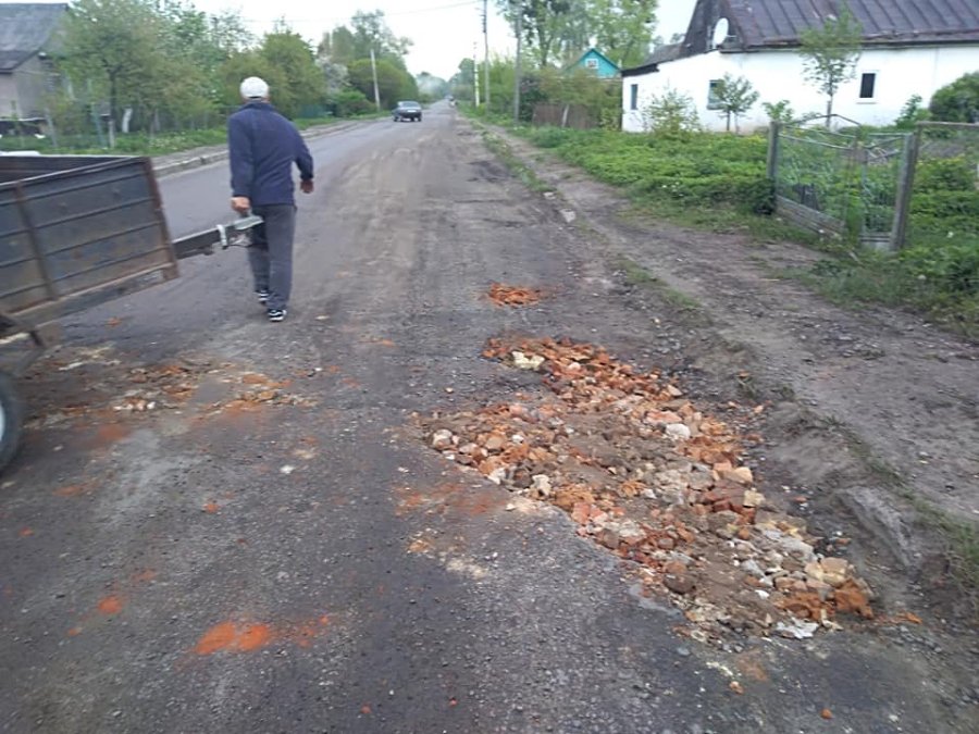 У містечку на Волині люди замощують ями на дорозі, хто чим може. ФОТО
