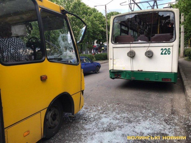 Внаслідок ДТП у тролейбуса вибите скло, у маршрутки – побитий передній правий бік та велика тріщина на лобовому склі.