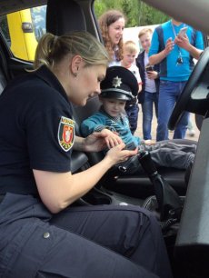 Традиційно, службовий автомобіль стояв на найбільш видному місці, і до нього була величезна черга, адже охочих дітлахів посидіти всередині, приміряти бронежилет і кепку, неформально поспілкуватись - було сотні. Дорослі ж з захватом спостерігали за тим, як діти швидко знаходять спільну мову з поліцією, як не бояться і ставлять масу запитань патрульним.