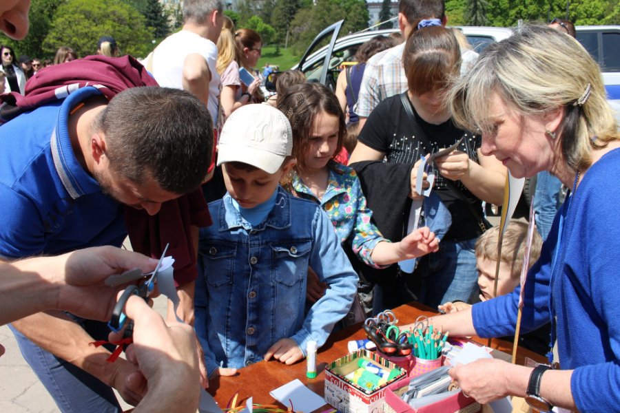 А Оксана Коба з Волинської обласної бібліотеки для юнацтва, традиційно, запропонувала охочим виготовити власноруч флікери – світловідбивні елементи в формі зірочок, машинок, дзвоників, сердечок. Тішить, що діти знають про ці предмети навіть краще за дорослих і охоче брались самостійно їх обмальовувати, вирізати та склеювати.