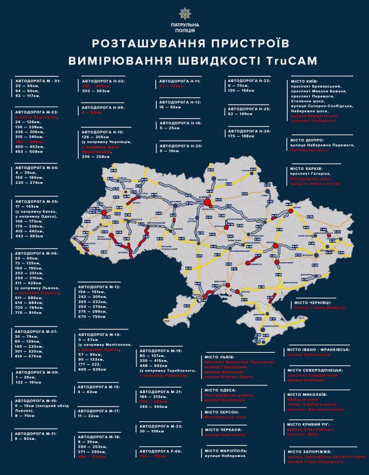 Заступник начальника Департаменту патрульної поліції Олексій Білошицький повідомив, що з понеділка, 13 травня, на дорогах країни будуть працювати 100 приладів TruCAM.