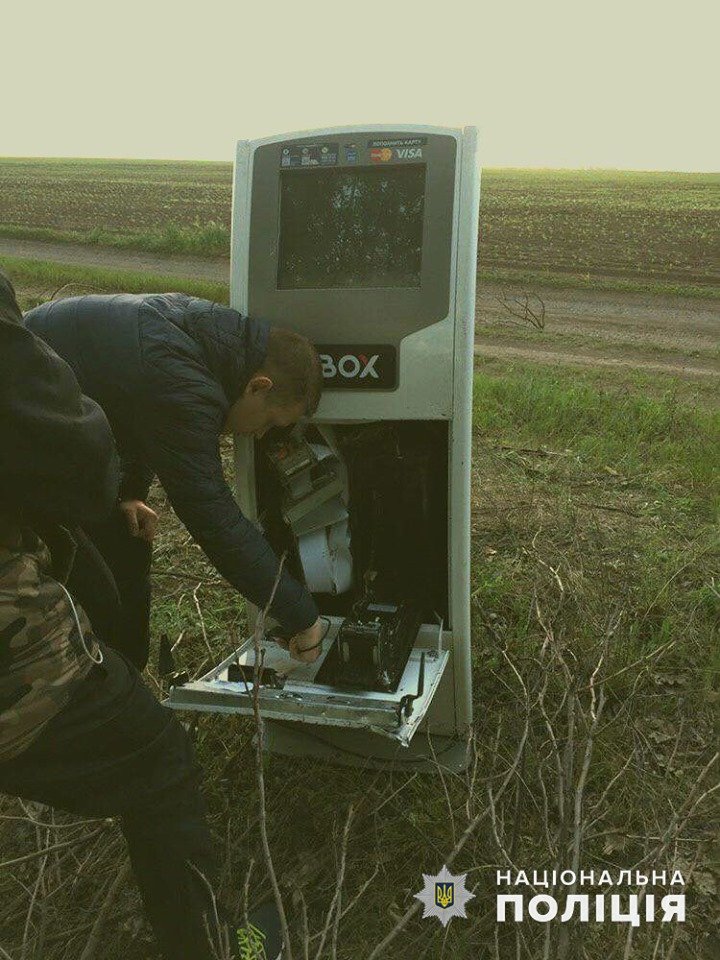 Про нову крадіжку поліцію попередили, тож злочинців застали на гарячому. У селищі Олександрівка з магазину чоловіки в масках вже виносили термінал з 10 тис. грн.