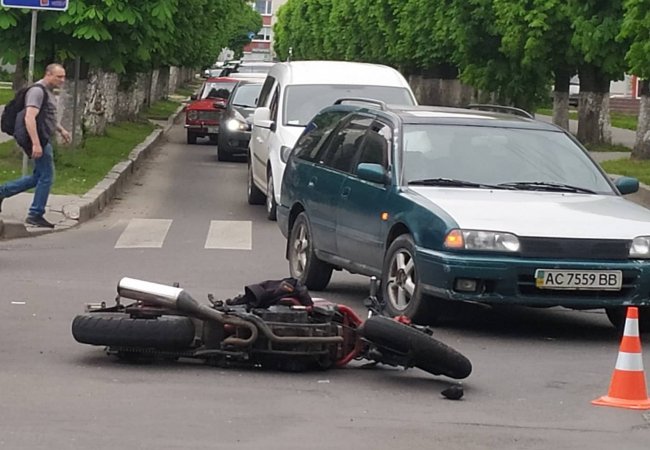 У Луцьку мотоцикл зіткнувся з легковиком. ФОТО