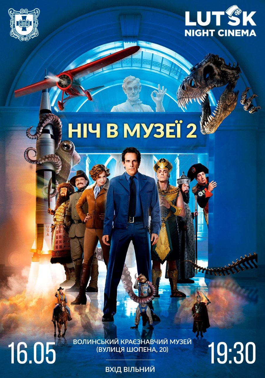 Цього разу це буде фільм «Ніч у музеї – 2». Захід розпочнеться о 19:30. Вікове обмеження: 6+.